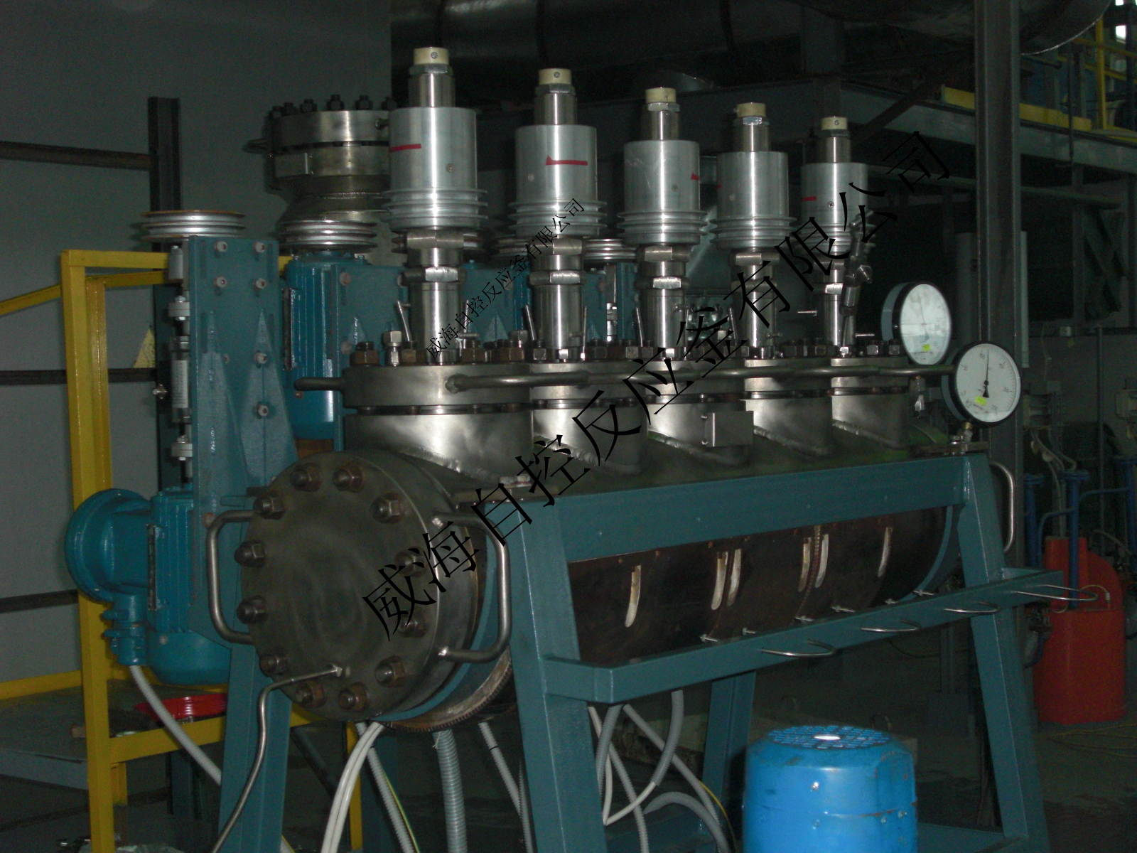 該反應(yīng)釜采用靜密封結(jié)構(gòu),攪拌器與電機(jī)間采用磁力攪拌系統(tǒng)連接,具有良好的密封效果和攪拌效果。配有控制儀,根據(jù)設(shè)定溫度進(jìn)行調(diào)整加熱器的工作時(shí)間,達(dá)到自動(dòng)恒溫的目的;同時(shí),根據(jù)攪拌負(fù)荷的需要,調(diào)節(jié)控制攪拌電動(dòng)機(jī)的變頻器,主要技術(shù)參數(shù):容積為:40-20000L,工作壓力:6Mpa,最高工作溫度:250℃,攪拌轉(zhuǎn)速:0-500 rpm,可變頻調(diào)速,加油方式為油浴、水浴、蒸汽、遠(yuǎn)紅外、熔鹽,外半圓管。